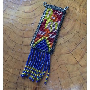 I've always had a thing for the sun. It was in all my pictures, as part of my branding of my signature in the art work of my youth. This is a very early beading effort, and is inspired by the Anishinaabe artist, Norval Morrisseau. I wear it on my jean jacket and it is one of my most favorite things I've ever made.